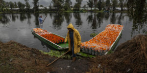 Marco Antonio Paéz camina a través de un tapete fulgurante de botones naranjas. Hay tantas nubes que los colores pintan gris, pero las flores no dejan de resplandecer, como si brillaran por sí mismas. Desde hace varios años, Marco Antonio cultiva cempasúchiles