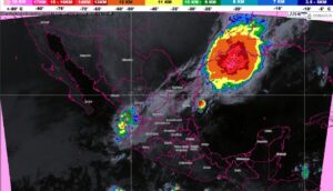 El Servicio Meteorológico Nacional informa que continuarán las lluvias fuertes para Jalisco, Nayarit, Michoacán, Guerrero, Oaxaca y Chiapas.