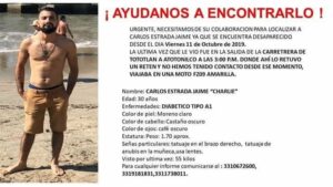 Familiares solicitan la colaboración de la ciudadanía para localizar a Carlos Estrada Jaime, alias “Charlie”, quien se encuentra desaparecido desde el viernes 11 de octubre.