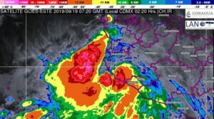 Por: Mayra Vargas. La Huerta, Jalisco. 19 de septiembre de 2019. (LF).- El Servicio Meteorológico Nacional informó a las 04:15 horas de este jueves, que el huracán «Lorena» categoría 1 en la escala Saffir- Simpson, se localiza en tierra en el municipio