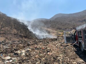 A las 13:00 horas de este viernes, el incendio registrado desde ayer por la tarde (16:30 horas) en el antiguo basurero del municipio de Autlán, ha sido sofocado entre el 70 y 75 por ciento: