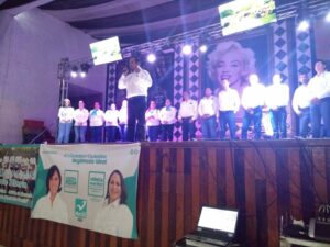 Con música de banda, aguas frescas, banderas blancas y globos turquesa, la noche de este martes cerró campaña el candidato a la presidencia municipal de Autlán por Nueva Alianza, Luis Alberto Miranda Zúñiga.