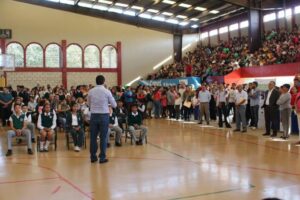 Durante la entrega de lentes del programa “Yo Veo Por Jalisco”, realizada la mañana de este jueves en el auditorio Solidaridad en Autlán de Navarro, María, madre de un alumno de la Escuela Primaria María Concepción Becerra de Celis, se manifestó y