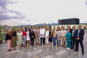 Los tres adolescentes ganadores del concurso de pintura “La vida no es mercancía, se trata de personas”, organizado por el Sistema Nacional de Protección Integral de Niñas, Niños y Adolescentes (SIPINNA) en el marco del mes dedicado a la prevención y erradicación