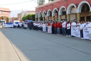Decenas de trabajadoras y trabajadores pertenecientes a 10 agrupaciones sindicales de Autlán, participaron en la marcha para conmemorar este primero de mayo, el Día del Trabajo, recorriendo las calles del centro de la ciudad para terminar en un pequeño mitin en el