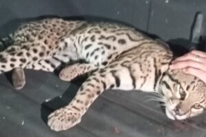 Este fin de semana pasado (2-3 noviembre) Luis Eugenio Rivera Cervantes a través de la Unidad de Rescate de Fauna Silvestre rescató a un ocelote atropellado en la carretera de Villa Purificación a Chamela, a la altura del poblado San Miguel.