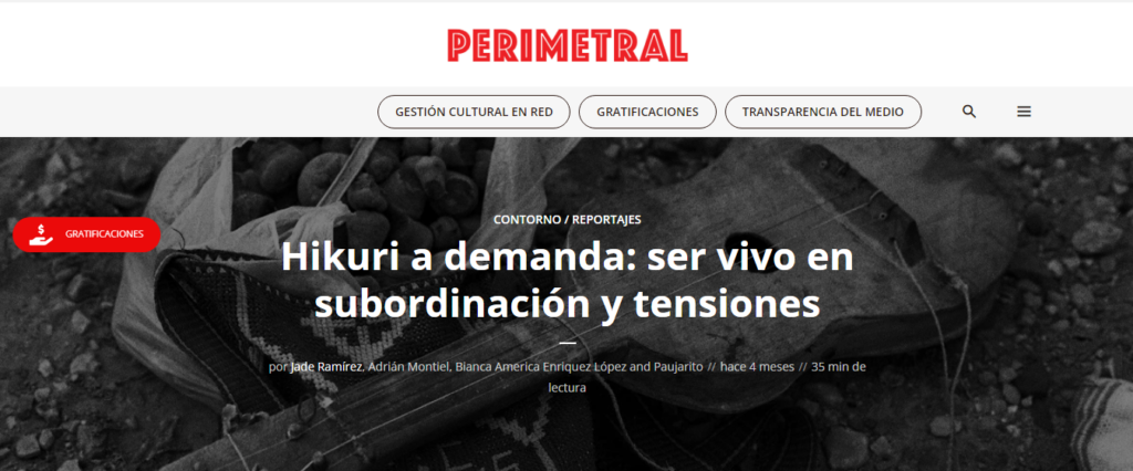 En la vigésimo octava edición del Premio Jalisco de Periodismo 2023, Perimetral Press uno de los integrantes de la Red de Medios Independientes de Jalisco, Macollo recibió una mención honorífica en la categoría de reportaje por el texto “Hikuri a demanda: el