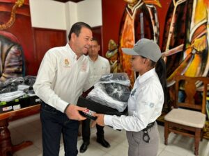 El personal de la Unidad Especializada Policial de Atención a Mujeres Víctimas de Violencia en el municipio de Cihuatlán recibió uniformes y equipos tecnológicos como parte de la Estrategia ALE, de la Secretaría de Igualdad Sustantiva entre Mujeres y Hombres.