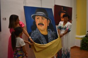 La pintora Armida Briseida Maldonado Rubio develó su última obra "El Autlense". La artista elaboró un retrato del guitarrista Carlos Santana, para la exposición pictórica en el marco del Séptimo Festival Áurea Corona.