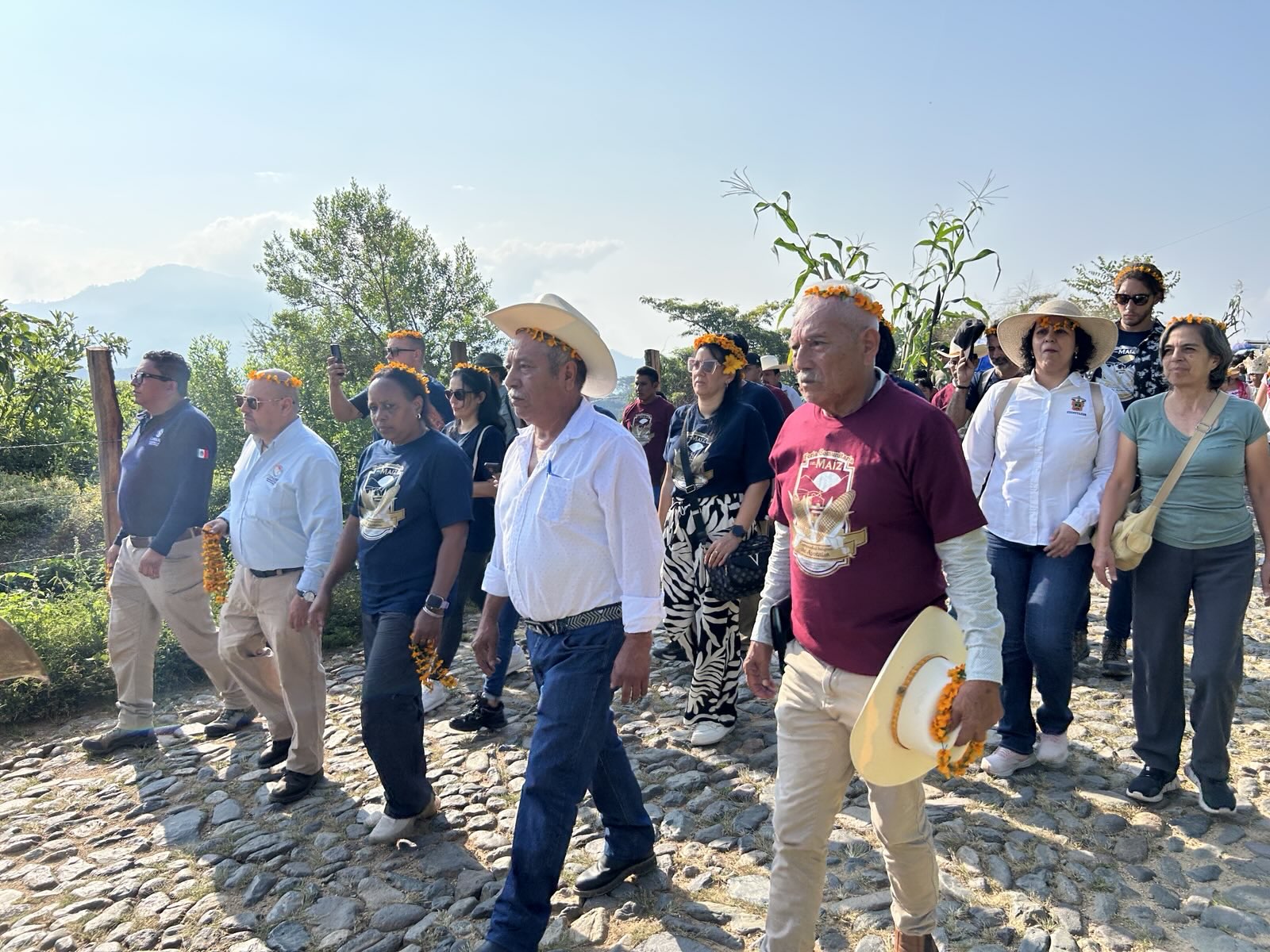 Un par de bandas de guerra y una escolta encabezaban el contingente, enseguida iban representantes de las instituciones organizadoras, los invitados de la comitiva cubana de la Reserva de la Biósfera Sierra del Rosario, después productores locales y vecinos del ejido, junto con una banda de música que amenizó el recorrido.