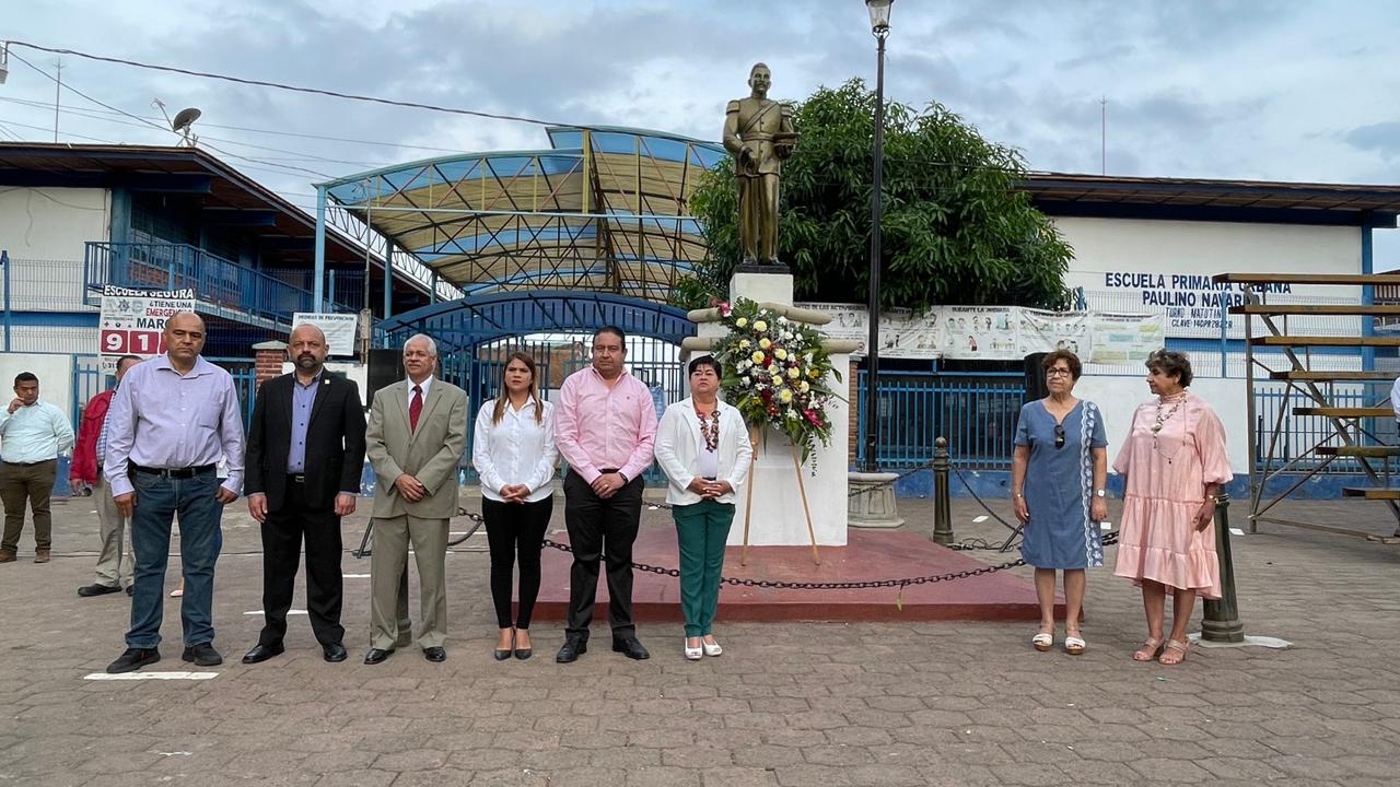 Autlán de Navarro, Jalisco.- 22 de junio del 2022.-(Letra Fría) Con la presencia de los alumnos de la Escuela Primaria «Paulino Navarro» y de la Escuela Secundaria «J. Jesús Velázquez» -mejor conocida como «Tecos»-, se llevó a cabo un acto cívico en conmemoración a los 131 años del natalicio del General Paulino Navarro.