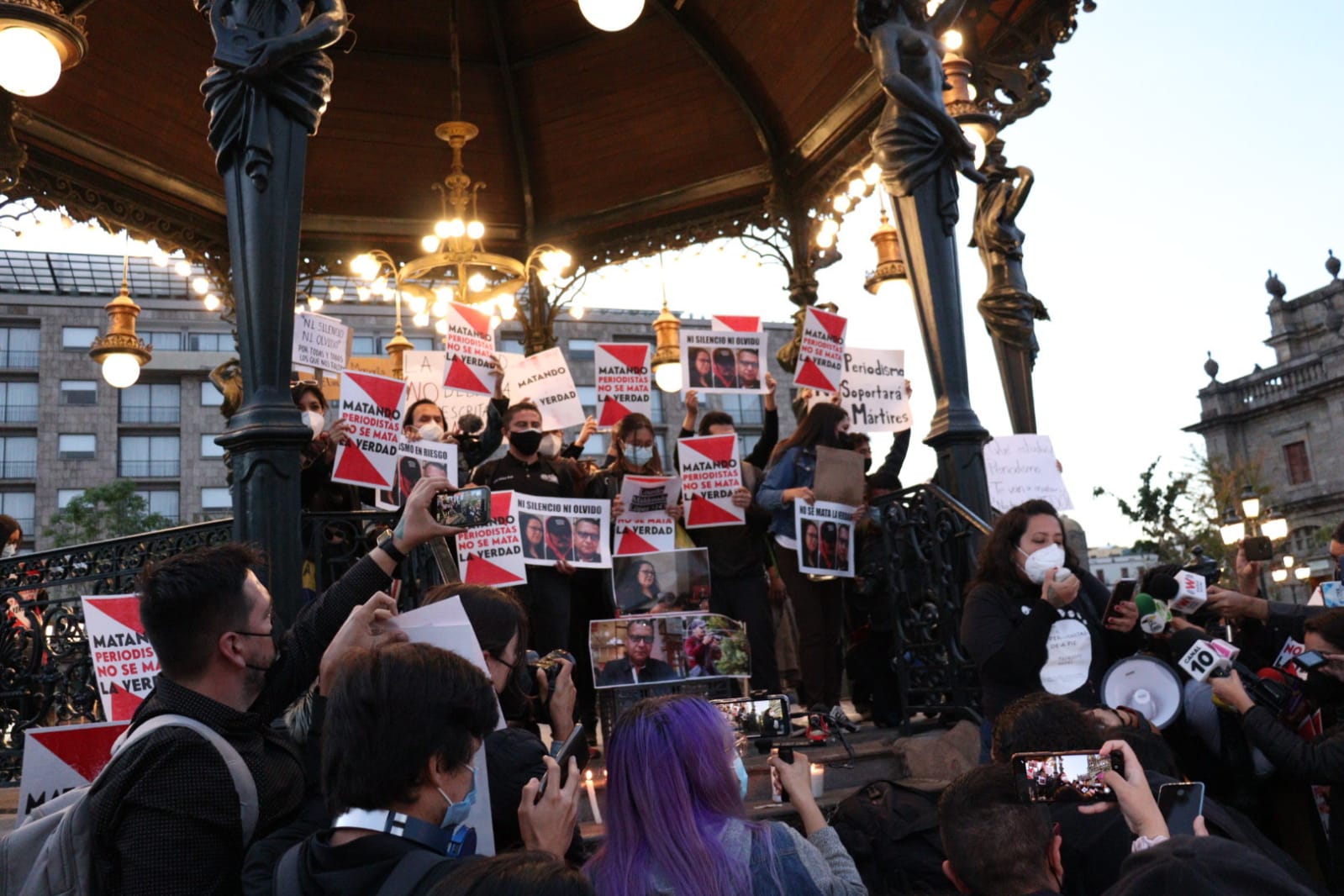 Guadalajara, Jalisco. 26 de enero de 2022 (Letra Fría) Congregados en Plaza ade Armas de Guadalajara, decenas de periodistas exigieron justicia por el asesinato de los periodistas Lourdes Maldonado, Margarito Martínez y José Luis Gamboa.