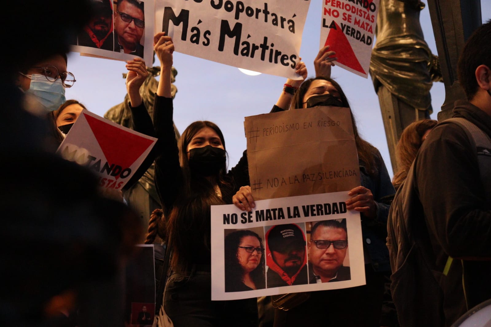 Durante el acto de protesta, se exclamó el nombre de cada uno de los 146 periodistas asesinados en México y se exigió justicia para ellos así como garantías para un ejercicio libre y seguro en el estado.