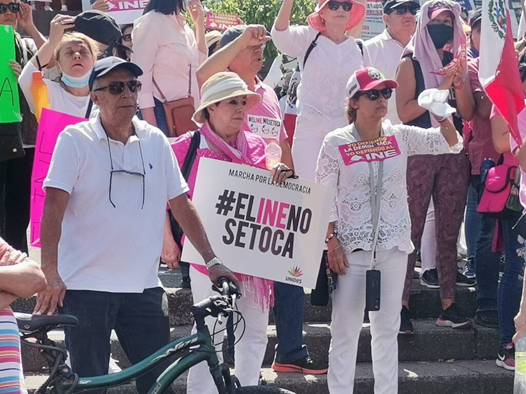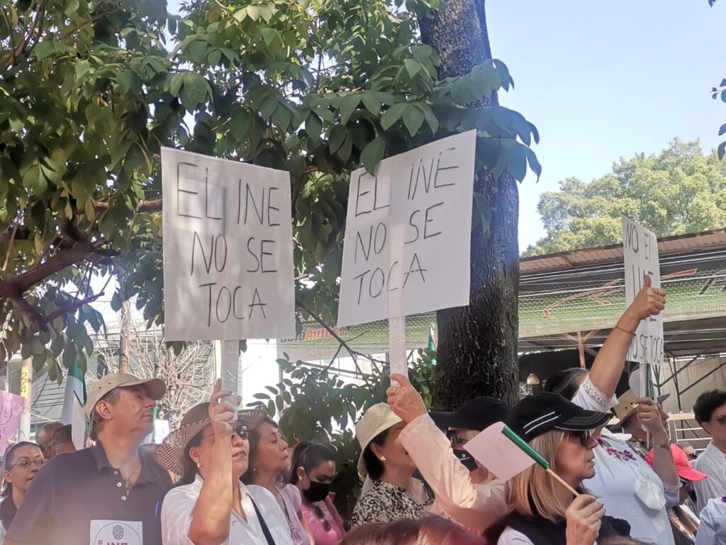 Acusaron que el gobierno del presidente Andrés Manuel López Obrador ha quedado a deber y por eso gritaron a una sola voz: «¡El INE no se toca!», y «¡Fuera López!».