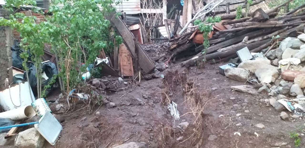 Fue tal la magnitud de la lluvia, que el techo de una vivienda colapsó, la fuerza de la naturaleza derribó también la barda de una cocina.