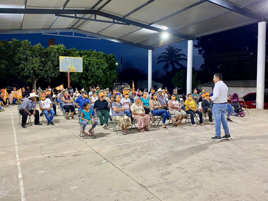 La Huerta, Jalisco. 27 de abril de 2021. (Letra Fría) El candidato a la presidencia municipal de La Huerta por Movimiento Ciudadano, Ray Mendoza, visitó la localidad de La Cofradía y ante decenas de ciudadanos se comprometió a concluir una obra que considera trascendental para el desarrollo económico de La Huerta, la carretera La Huerta – La Mesa, que además, es una obra que demanda la población huertense.