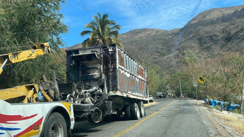 El percance fue atendido por la Guardia Nacional quienes vigilaron el tránsito y terminaron las maniobras de retiro de los dos camiones incendiados en este punto.
