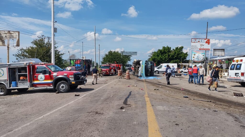 Un camión de pasajeros de la empresa Autocamiones del Pacífico volcó y chocó contra tres vehículos más en un accidente el crucero de 4 Caminos en San Gabriel. El saldo al momento es de cuatro personas fallecidas. De acuerdo con Protección Civil Jalisco el camión se quedó sin frenos y arrolló a cuatro personas que