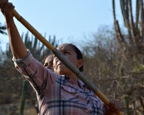 Ya en el suelo continúan sangrando o llorando, depende quién las mire. Para Leslie las pitayas lloran cuando son arrancadas de los brazos de la cactácea que les da la vida; sus lágrimas son producidas por el gancho de metal que penetra