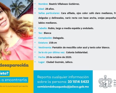 Con el objetivo de que se difunda por los 125 municipios del estado  la imagen de Beatríz Villalvazo Gutiérrez, joven que desapareció el pasado 21 de octubre en Ciudad Guzmán, la Comisión de Búsqueda de Personas del estado de Jalisco, dio a