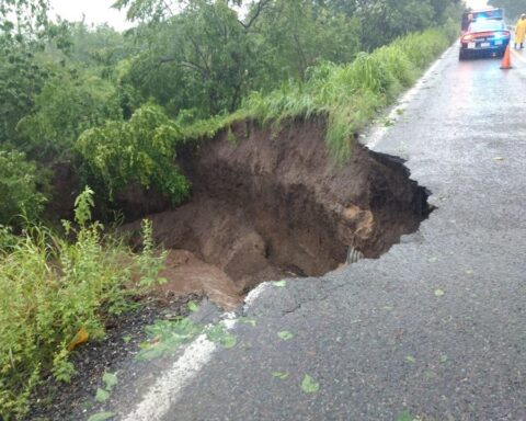 Las intensas lluvias en la región a causa del huracán “Lorena” han ocasionado un socavón en la carretera 80 Santa Cruz-Melaque, en el kilómetro 253+350.