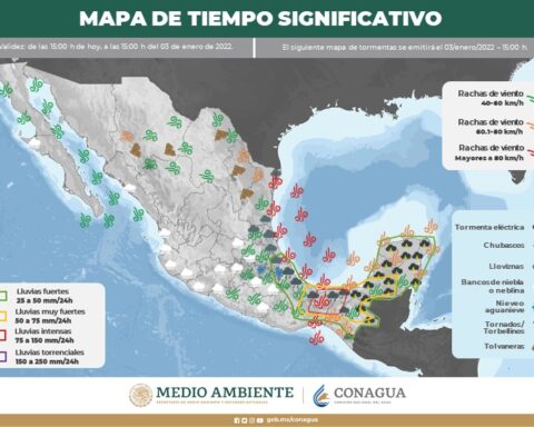 Las condiciones descritas serán generadas por el sistema frontal número 1, que continuará semiestacionario en el sur del Golfo de México; un canal de baja presión extendido sobre la Sonda de Campeche y otro desde el norte hasta el occidente y centro