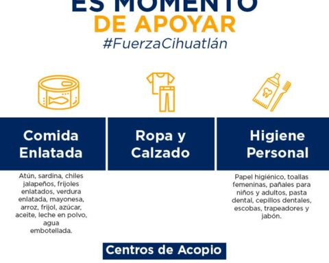 El Gobierno de Cihuatlán pide el apoyo solidario de toda la población para ayudar a los damnificados de la Tormenta Tropical “Narda”. Por ello abrió dos centros de acopio, uno ubicado en las instalaciones de DIF en la calle Aquiles Serdán #2