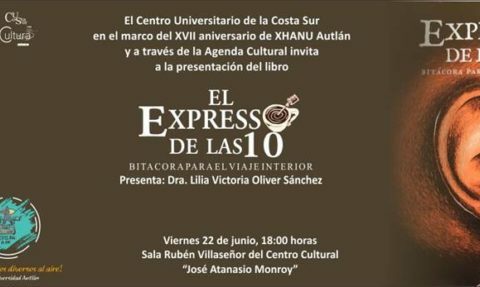 El CU Costa Sur, invita a la población en general a asistir a la presentación del libro “El Expresso de las 10, bitácora para el viaje interior”, de la autoría de Alonso Torres Córdova, Ricardo Manuel Salazar Ruiz y Guadalupe Estrella