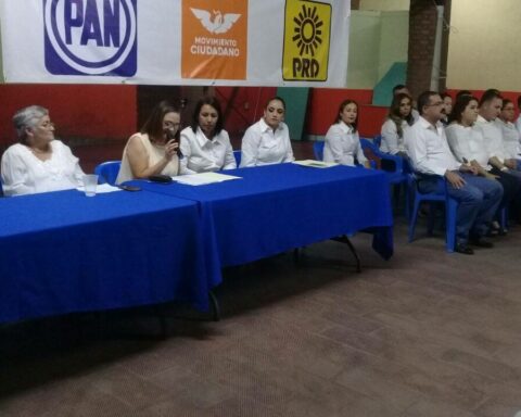 Por: Rafael Luna. El Grullo, Jalisco. 13 de abril de 2018. (Letra Fría).- La coalición “Por El Grullo al Frente”, integrada por los partidos Movimiento Ciudadano, PAN y PRD, presentó anoche de manera oficial a su candidata a la presidencia municipal de