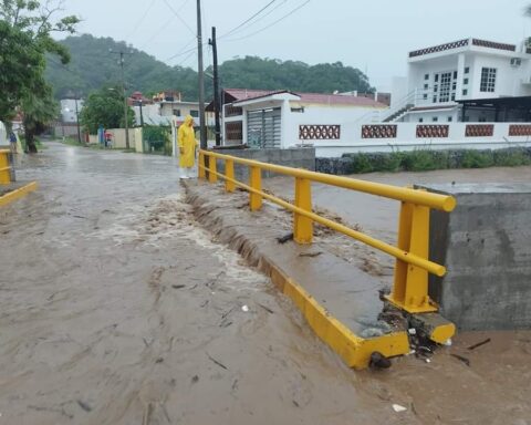 El arroyo El Pedregal que se ubica en el municipio de Cihuatlán, alcanzó el 100 por ciento de su capacidad debido a las lluvias que han caído en las últimas horas debido a los efectos del huracán Orlene.