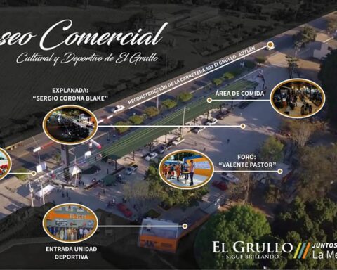 Alrededor de 15 millones de pesos fueron destinados en la construcción del Paseo Comercial, Cultural y Deportivo de El Grullo. El gobernador de Jalisco, Enrique Alfaro, asistió a la inauguración del espacio que ofrecerá un área de comercio ambulante, una explanada y