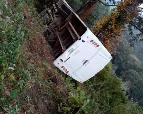 Seis personas resultaron lesionadas luego que el autobús que pasajeros en el que viajaban volcara en la carretera estatal El Grullo – Ciudad Guzmán, a la altura de El Floripondio.