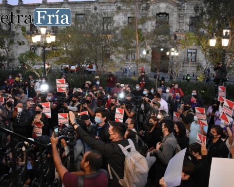 Congregados en Plaza ade Armas de Guadalajara, decenas de periodistas exigieron justicia por el asesinato de los periodistas Lourdes Maldonado, Margarito Martínez y José Luis Gamboa.