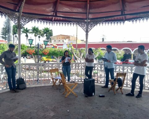 Este jueves, una decena de jóvenes se reunieron en el kiosco del jardín Constitución de Autlán de Navarro para conmemorar a los 43 normalistas de Ayotzinapa, a cinco años de su desaparición forzada.