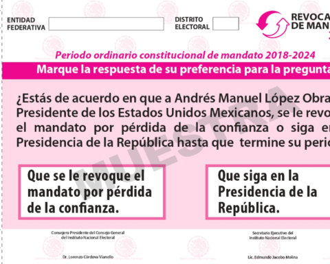 La papeleta que se entregará el próximo 10 de abril dice: ¿Estás de acuerdo a que Andrés Manuel López Obrador, Presidente de los Estados Unidos Mexicanos, se le revoque el mandato por pérdida de la confianza o siga en la Presidencia de