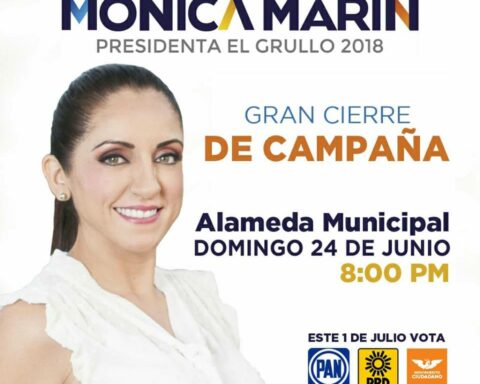 La candidata a la presidencia municipal de El Grullo por la coalición "Por Jalisco al Frente", Mónica Marín Buenrostro, cerrará su campaña este domingo 24 de junio en la Alameda Municipal en punto de las 20:00 horas.
