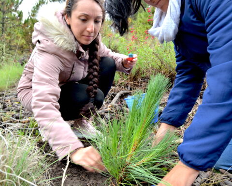 Entre la niebla de la mañana y el frío de la montaña, ciudadanos de Zapotlán El Grande plantaron 30 pinos en el Parque Nacional Nevado de Colima.