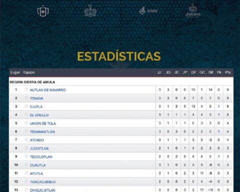 Con nueve puntos, la selección de Autlán se ubica en el primer lugar de la tabla de posiciones de la región Sierra de Amula, luego de ganar los tres partidos de las tres fechas que lleva esta primera edición de la Copa
