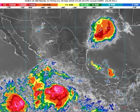 A las 10:00, horas tiempo del centro de México, la tormenta tropical Lorena y la Depresión Tropical 14-E se desarrollaron en la cuenca del océano Pacífico, por lo que se estableció zona de vigilancia desde Zihuatanejo, Guerrero, hasta Cabo Corrientes, Jalisco, informó
