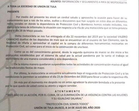 La polémica entorno a la rifa de una moto en Unión de Tvla obligó a la Unidad Municipal de Protección Civil y Bomberos del municipio a explicar que el sorteo programado para el 28 mayo se cambió al 23 de diciembre de