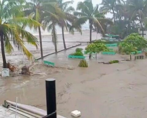Debido a las fuertes lluvias provocadas por la tormenta tropical “Hernan” la localidad de La Manzanilla en La Huerta, Jalisco sufre inundación en la vía pública, además se registra fuete oleaje, así lo dio a conocer Protección Civil del Estado.