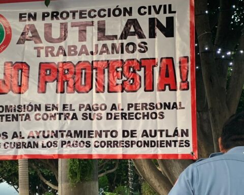 Bomberos trabajan bajo protesta por falta de pagos; colocan una lona frente a la alcaldía de Autlán