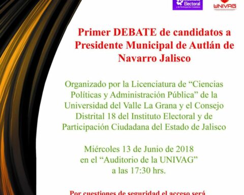 El primer debate de los candidatos a la presidencia municipal de Autlán de Navarro se llevará a cabo este miércoles 13 de junio a las 17:30 horas en las instalaciones de la Universidad del Valle La Grana (UNIVAG).